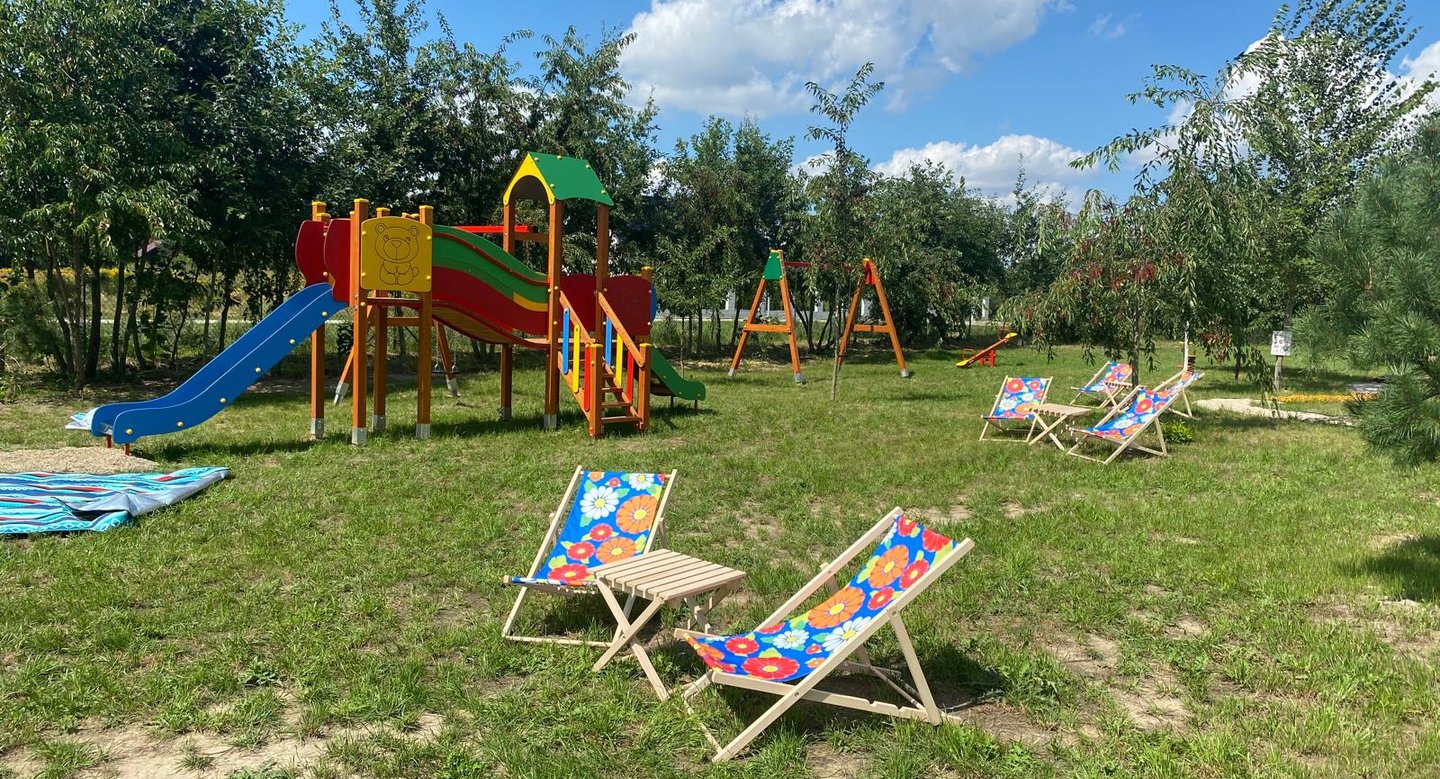 Przy sprzyjającej pogodzie rozkładamy leżaki i stoliki w ogrodzie