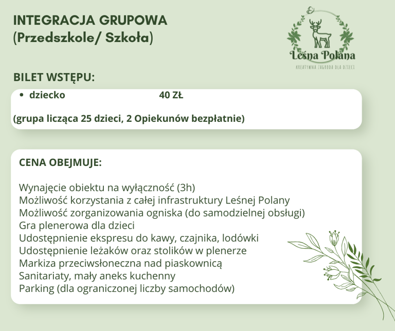 Oferujemy zajęcia outdoorowe dla grup zorganizowanych, takich jak przedszkola, w Oleśniczce 55 C.