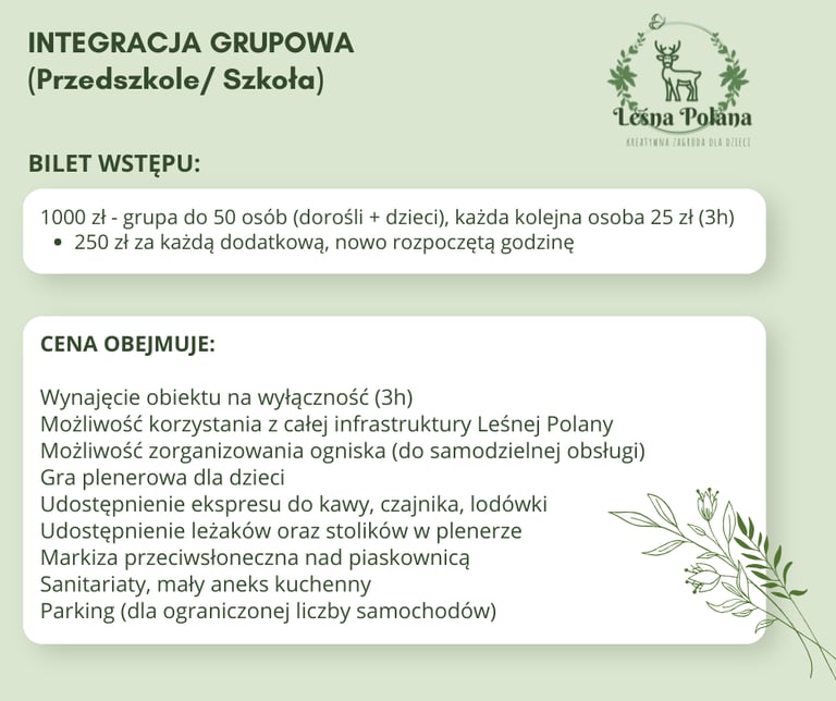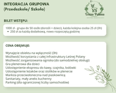 Oferujemy zajęcia outdoorowe dla grup zorganizowanych, takich jak przedszkola, w Oleśniczce 55 C.